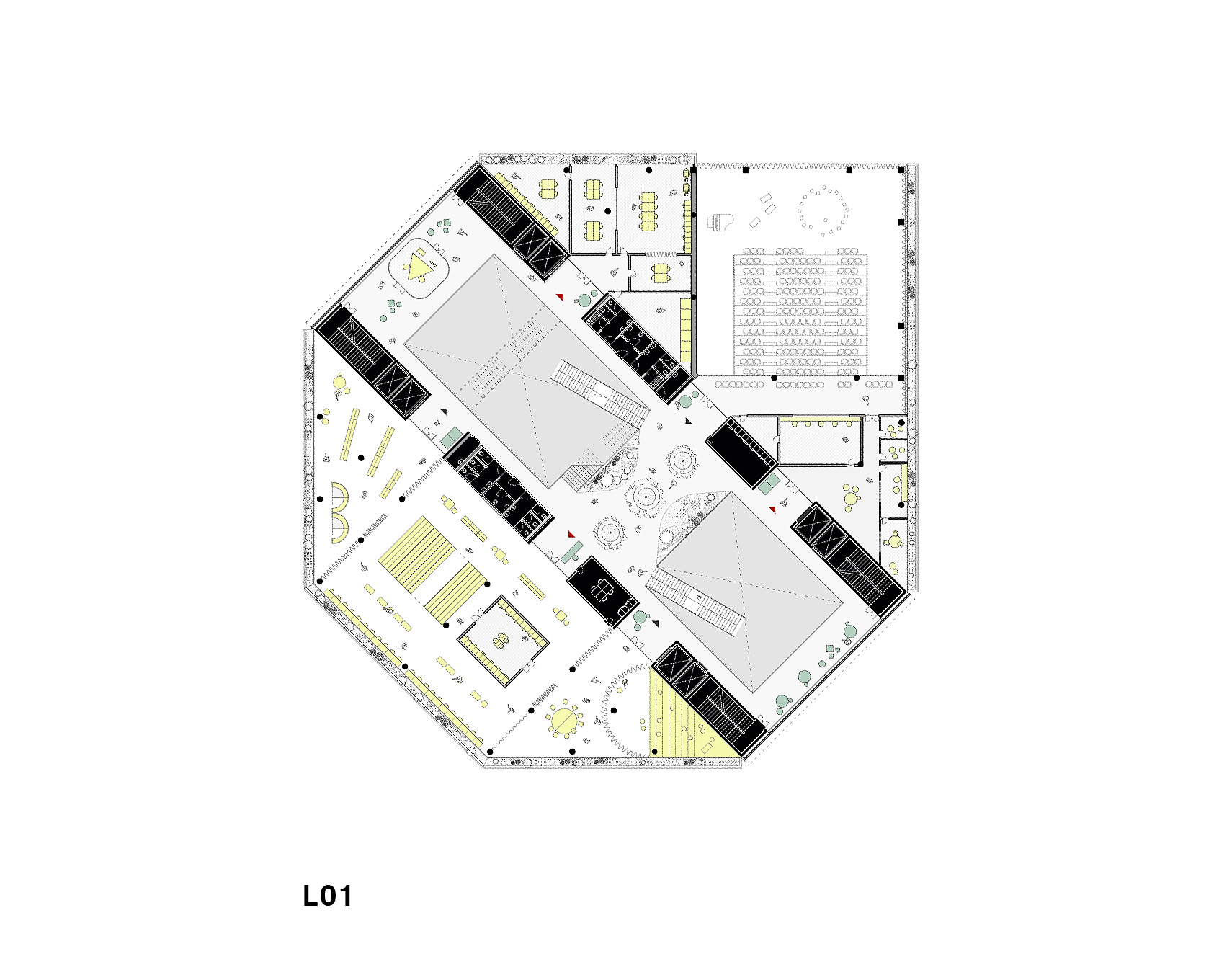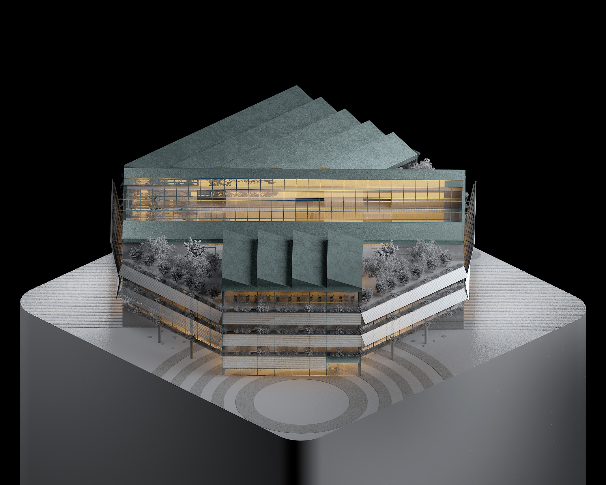 We conceive the library as a public cultural machine: at once building, infrastructure, and fragment of city—a vessel designed to carry and project knowledge.