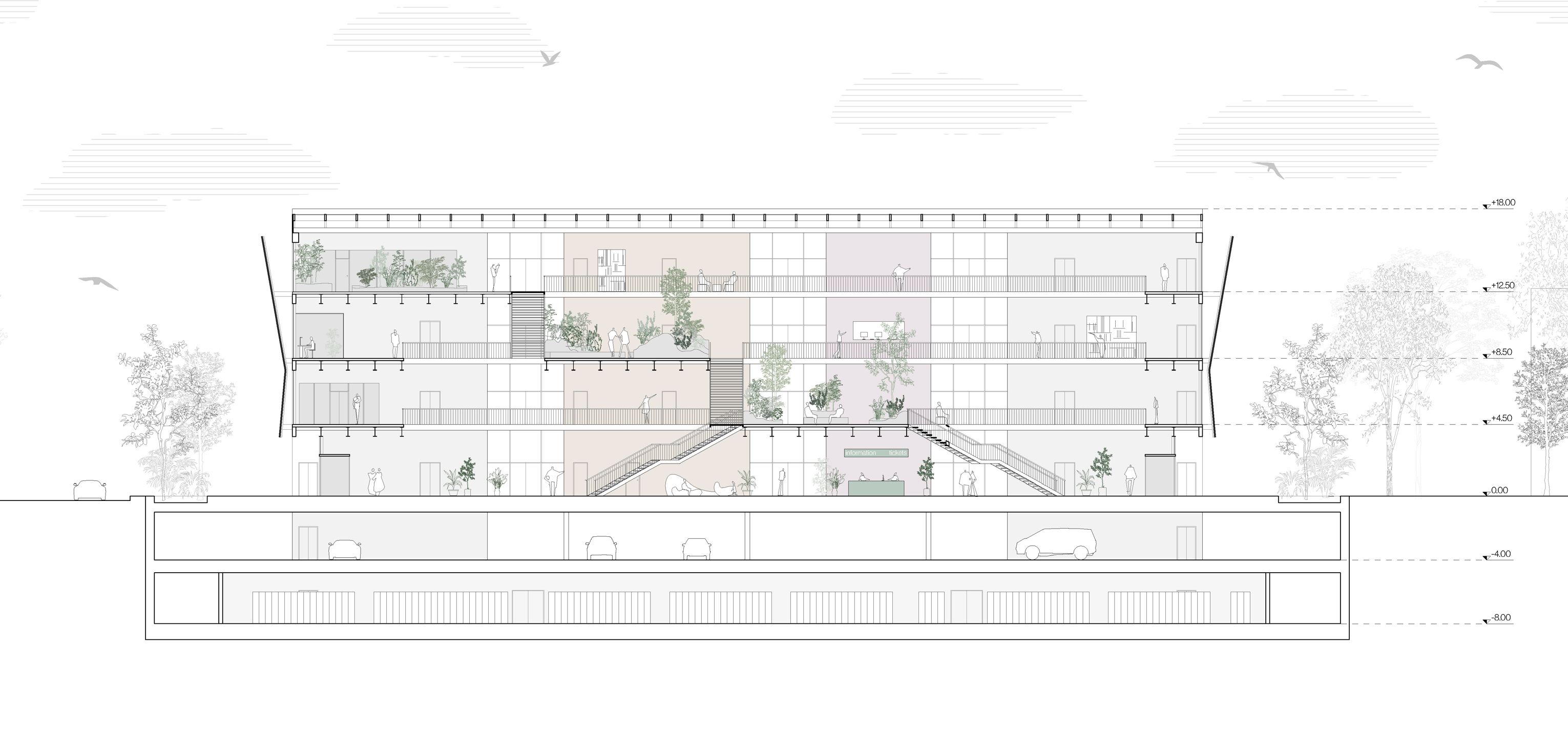 As a climatic organism, the library uses light, structure, air, and organic matter to shape how information is experienced and shared. It is a compact spaceship for ideas, precise and legible—a realistic utopia.